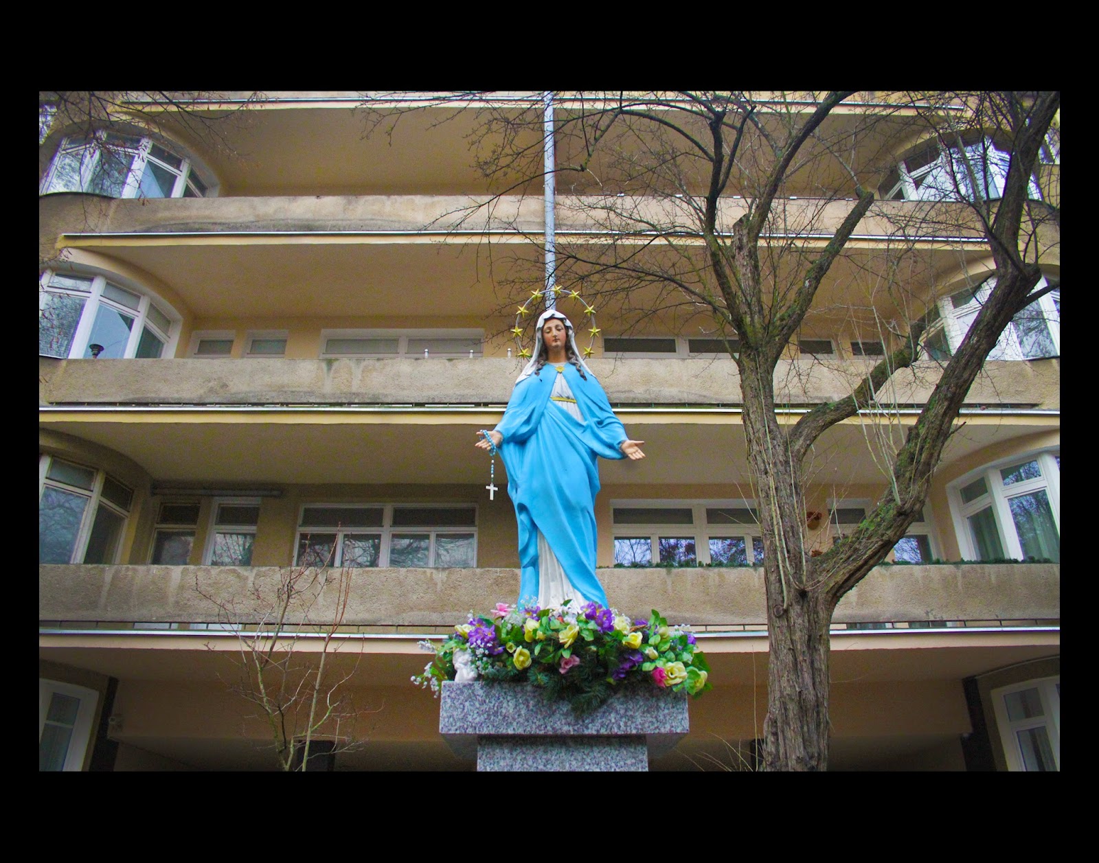 These photographs bring us a private and personal reality of the Warsaw Uprising and the resilience of its residents to survive by any means necessary. They show us that the residents' faith was not abandoned or destroyed when their city was being besieged by the Germans and the Soviets. The shrines show us today that there is faith and reverence for these places, and the belief these shrines till watch over the neighborhood is evident by the care and devotion they obviously still receive.